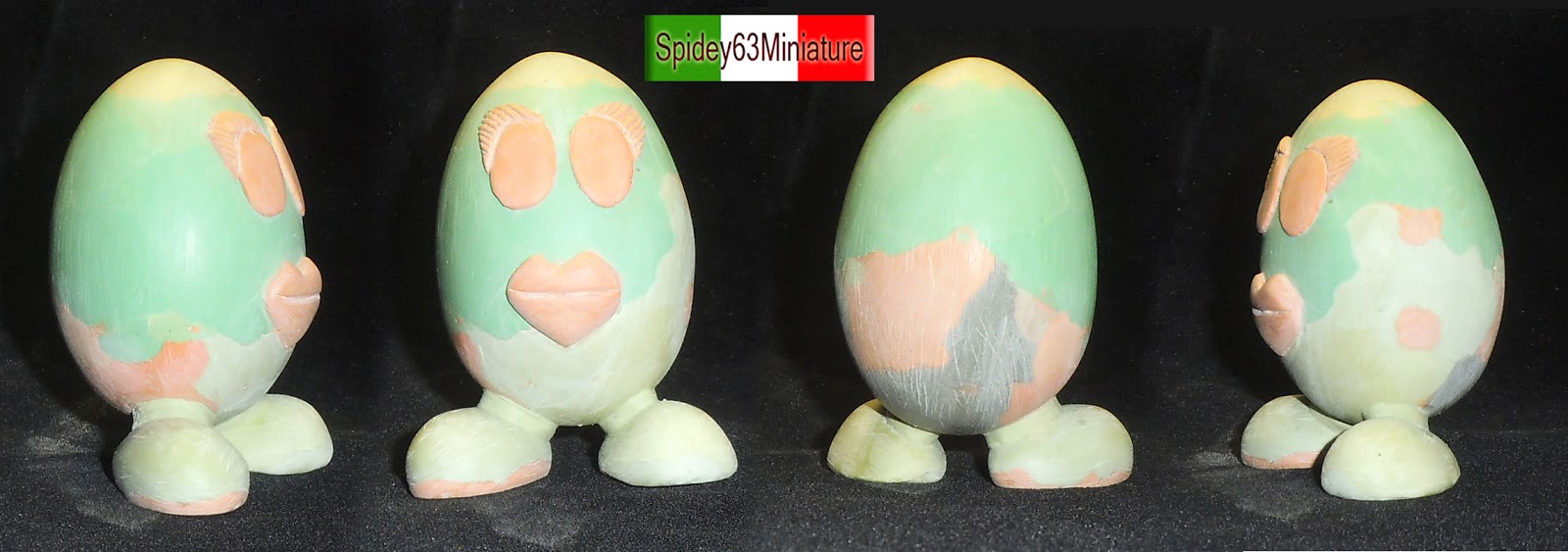 Ho realizzato Miss Egg rivestendo un pò alla volta una pallina di polistirolo con le rimanenze di stucco (milliput) che utilizzo per le mie sculture .